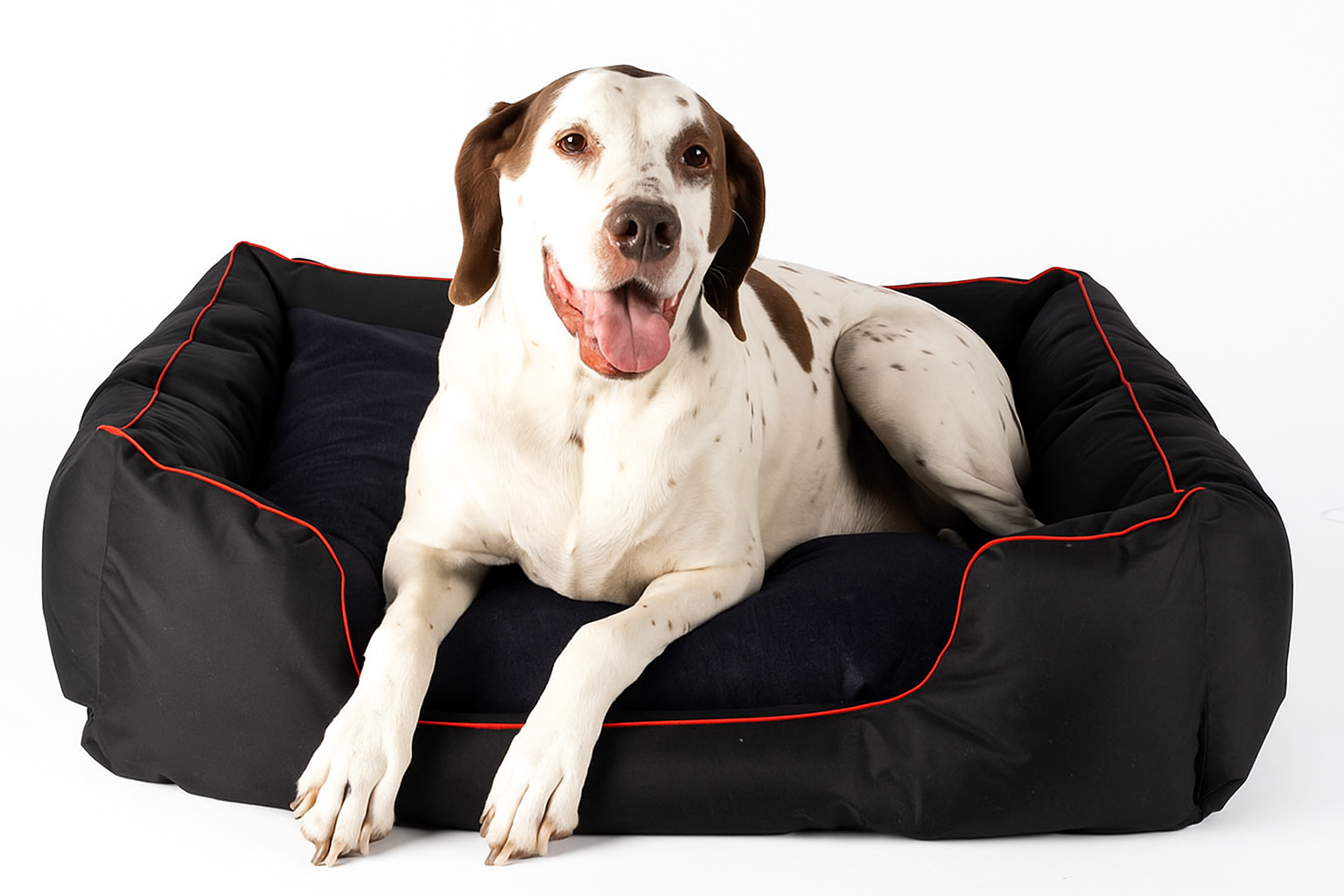 Canvas Square Dog Bed, Black with Piping – Durable Pet Bed for Medium to Extra Large Dogs